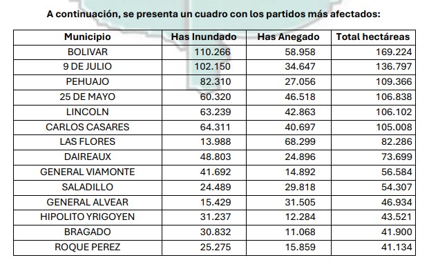 “Cuando hablamos de superficie afectada nos referimos a áreas que, aun sin agua visible, no poseen condiciones mínimas para avanzar con las labores de siembra: falta de piso, caminos intransitables y ausencia total de accesibilidad para maquinaria. En los hechos, son hectáreas que quedaron fuera de producción”, se agregó.