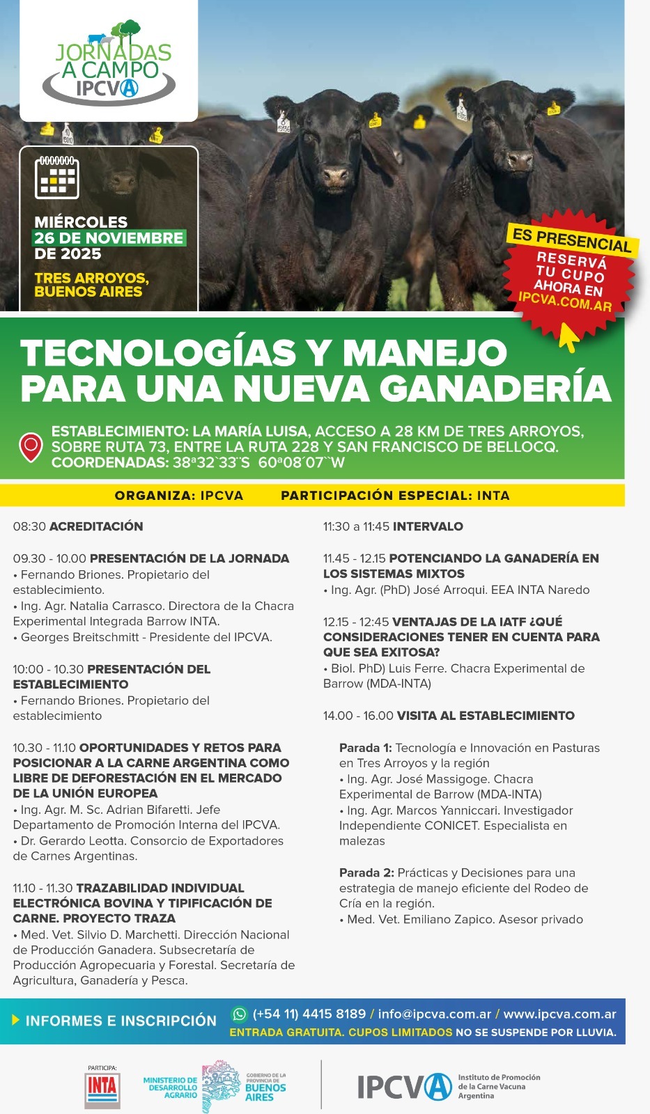 No se suspende por lluvia y por más informes los interesados pueden comunicarse al (+54 11) 4415-8189 / info@ipcva.com.ar