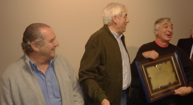 La entrega del premio Pilares de Carbap a Merbilhaa (der.) en julio de 2013, de manos de Balfour y con aparición de Jorge M. Grimberg (izq.), ex titular de la AGA.