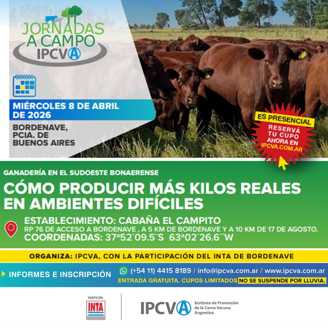 “Cómo producir más kilos reales en ambientes difíciles”. Este es el lema de la jornada a campo que realizará el Instituto de Promoción de la Carne Vacuna Argentina (IPCVA) el venidero miércoles 8 de abril.