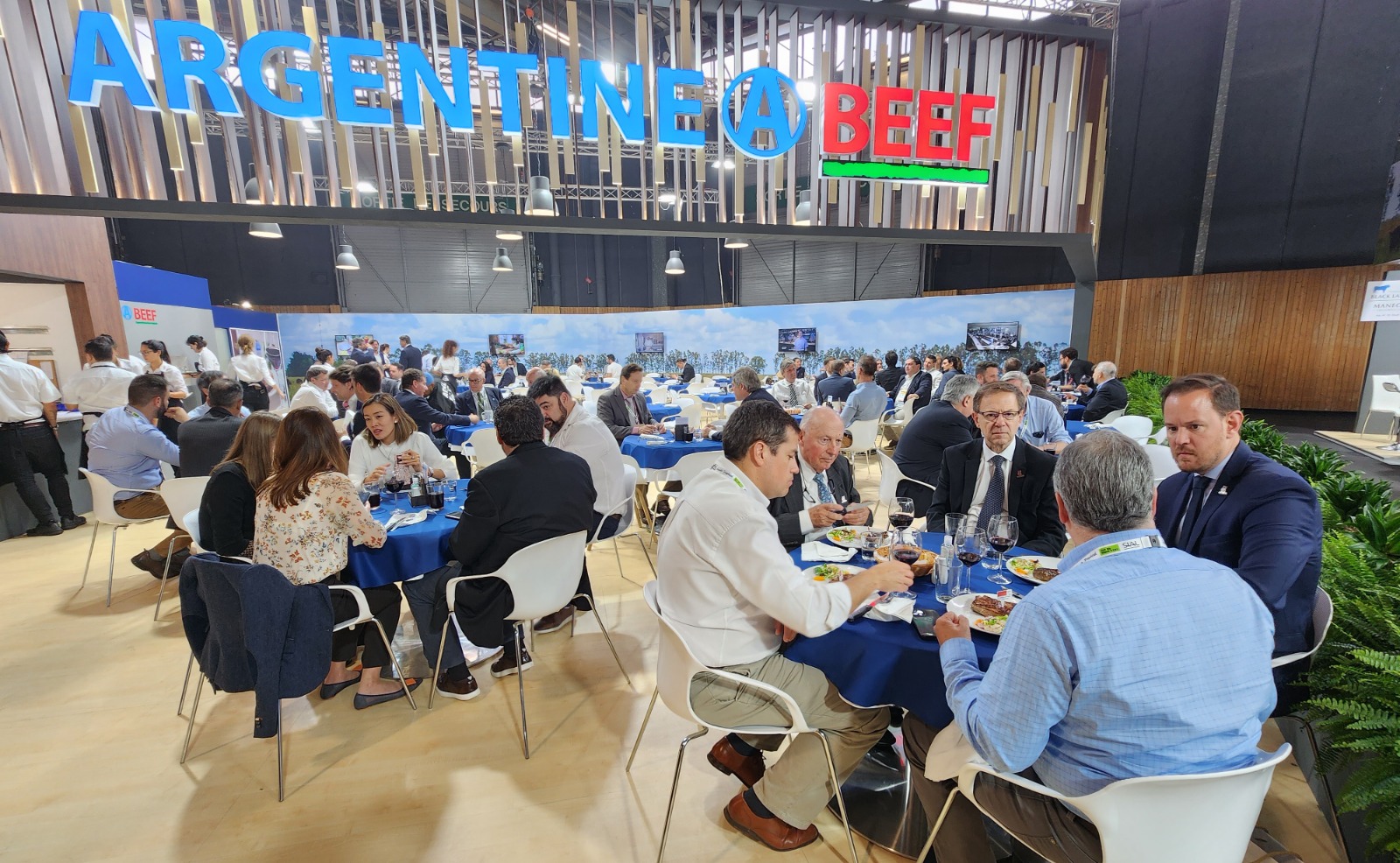 Como es habitual, el estand de la carne argentina tendrá un gran restaurante de 40 mesas, en el que los expositores podrán invitar a sus clientes a degustar bife ancho y angosto a la parrilla.