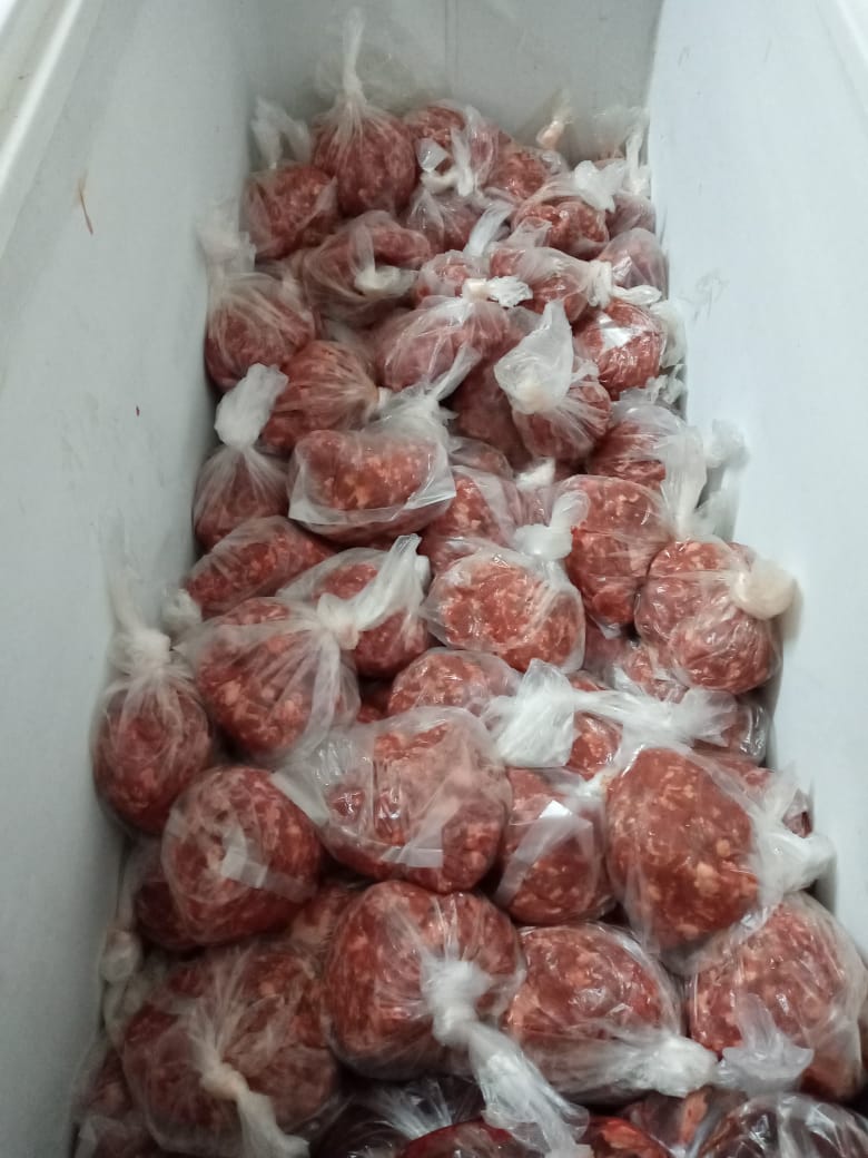 La carne picada llega a los comedores e instituciones en bolsas de 2 kilos. Allí se reparten a diferentes familias, pero una gran parte se destina a la elaboración de viandas con valor agregado. Es decir, se hacen canelones, empanadas y otros preparados.